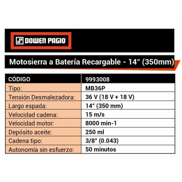 MOTOSIERRA A BATERIA 14″ BRUSHLESS
